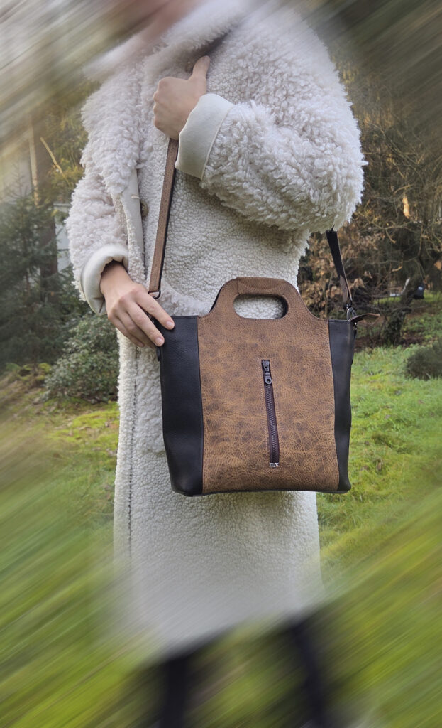 Handtas/kleine shopper met praktische handgrepen en afneembare schouderband.