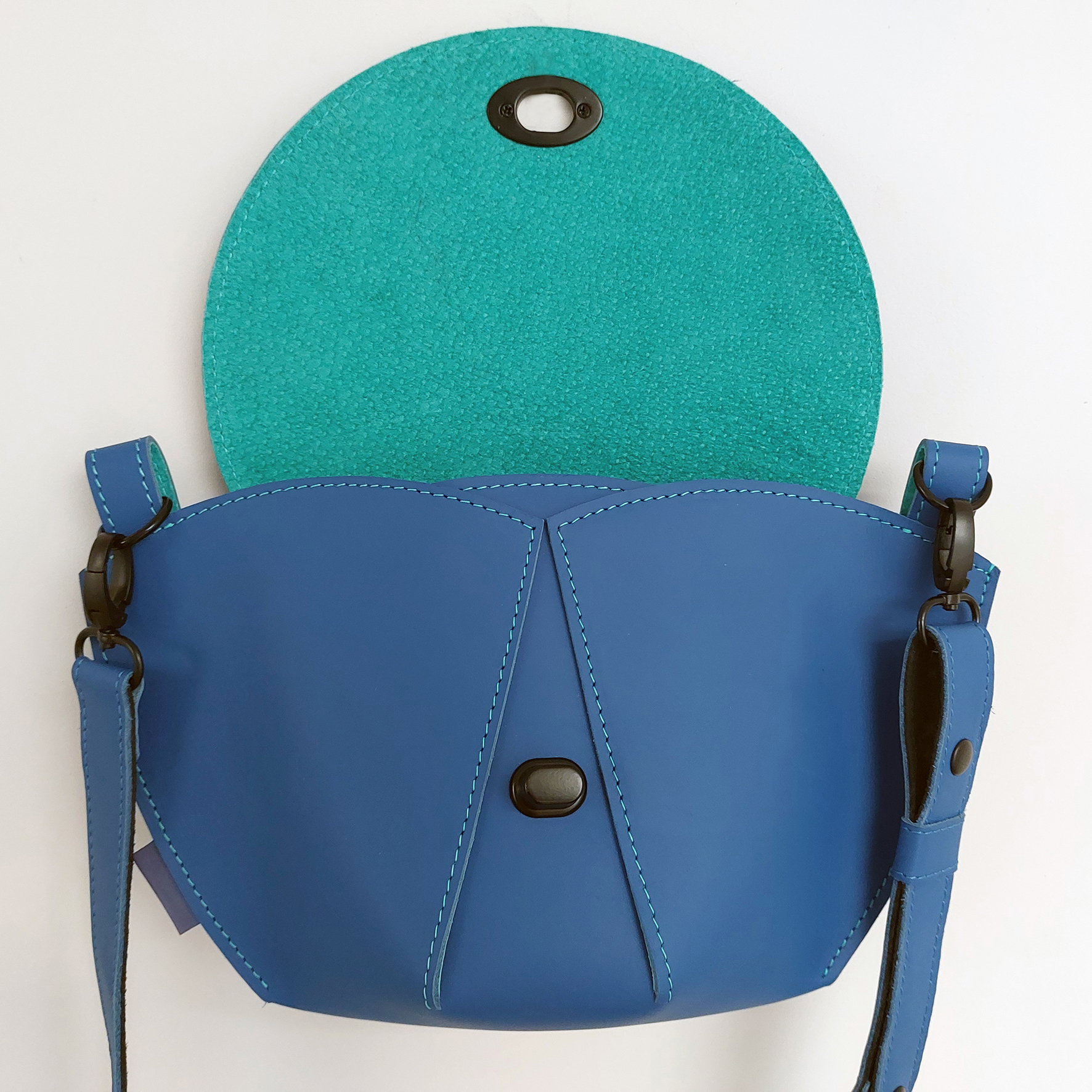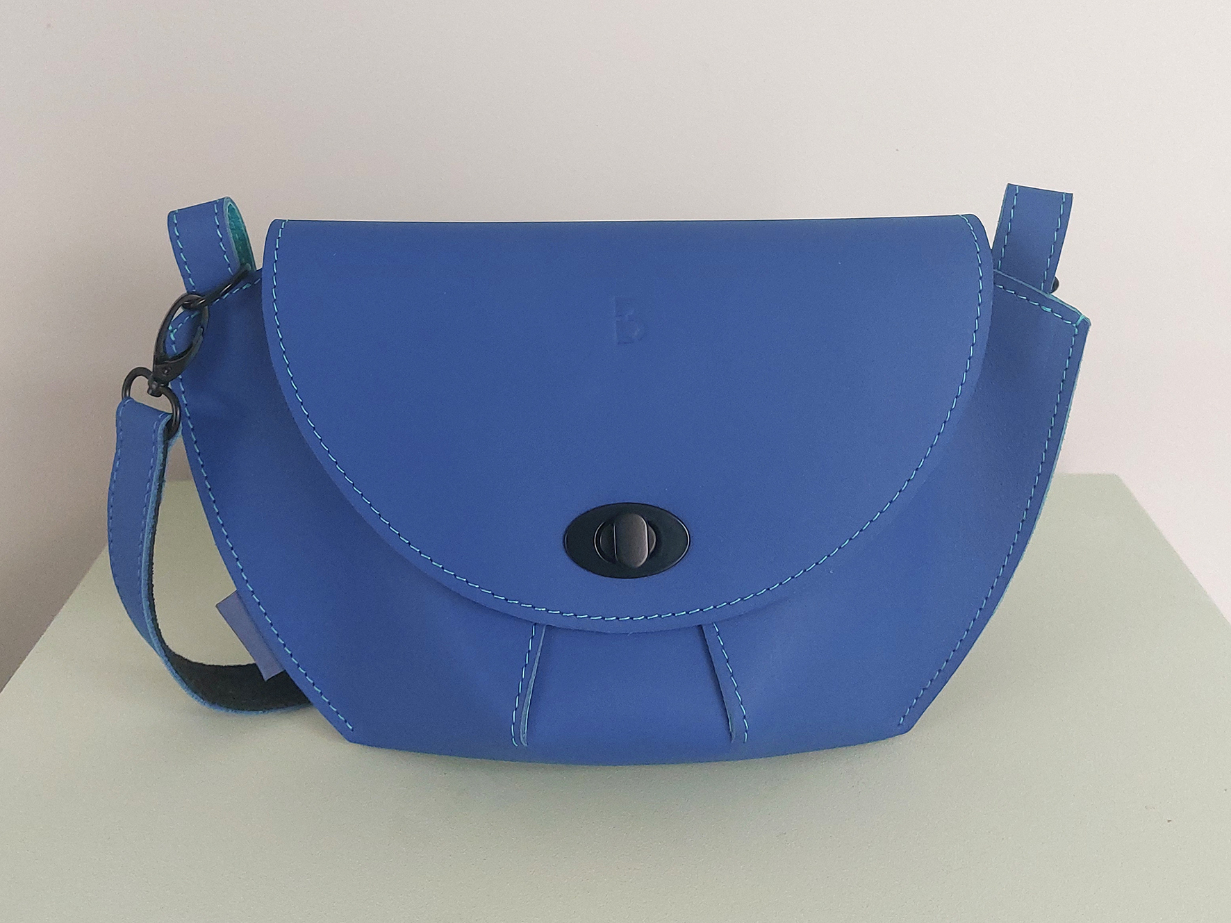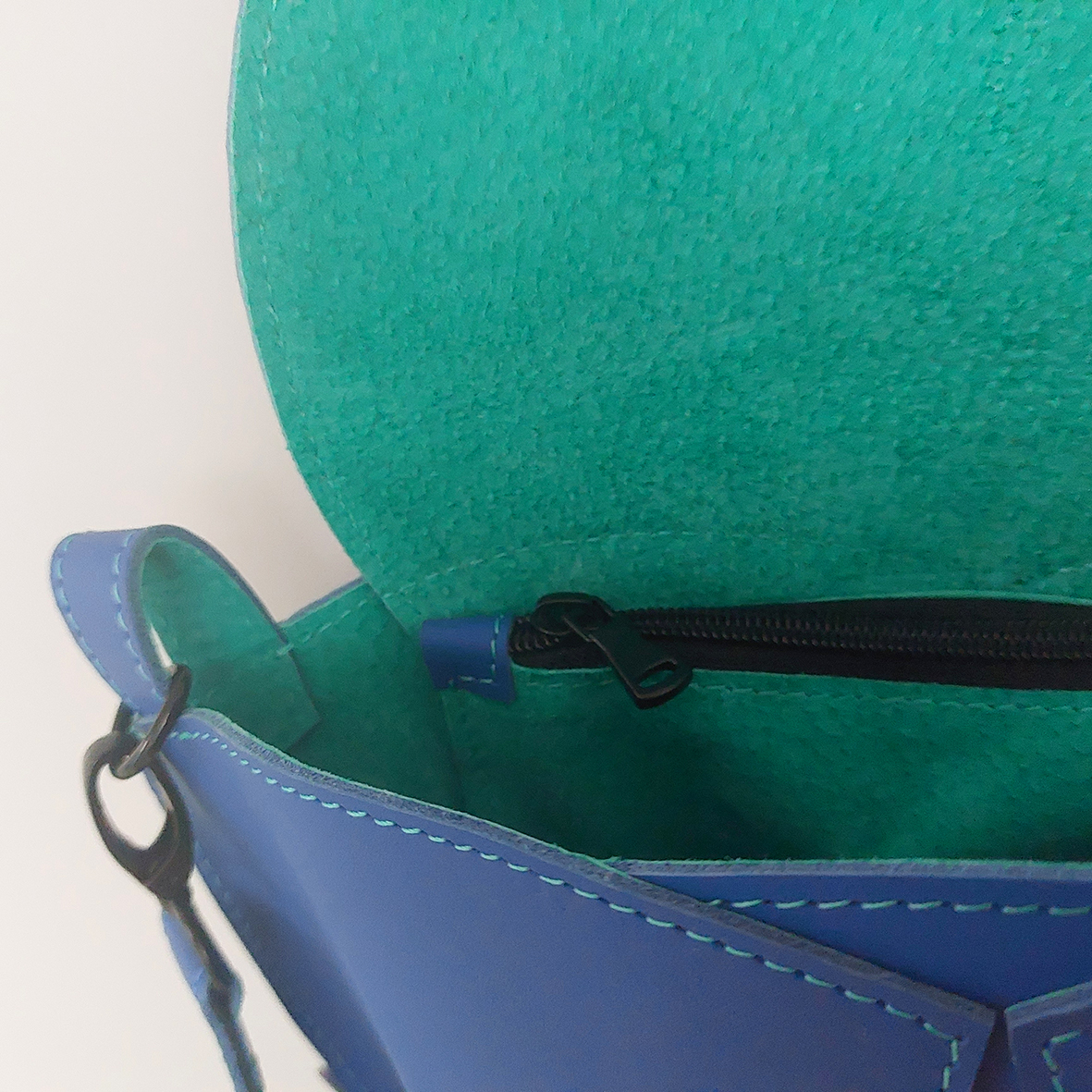 Een tas gemaakt van Ecco leer, van het bekende schoenenmerk. Vanwege de beperkte verkrijgbaarheid van dit leer zijn er slechts enkele tassen van gemaakt. Het binnenvakje met rits is uitneembaar.