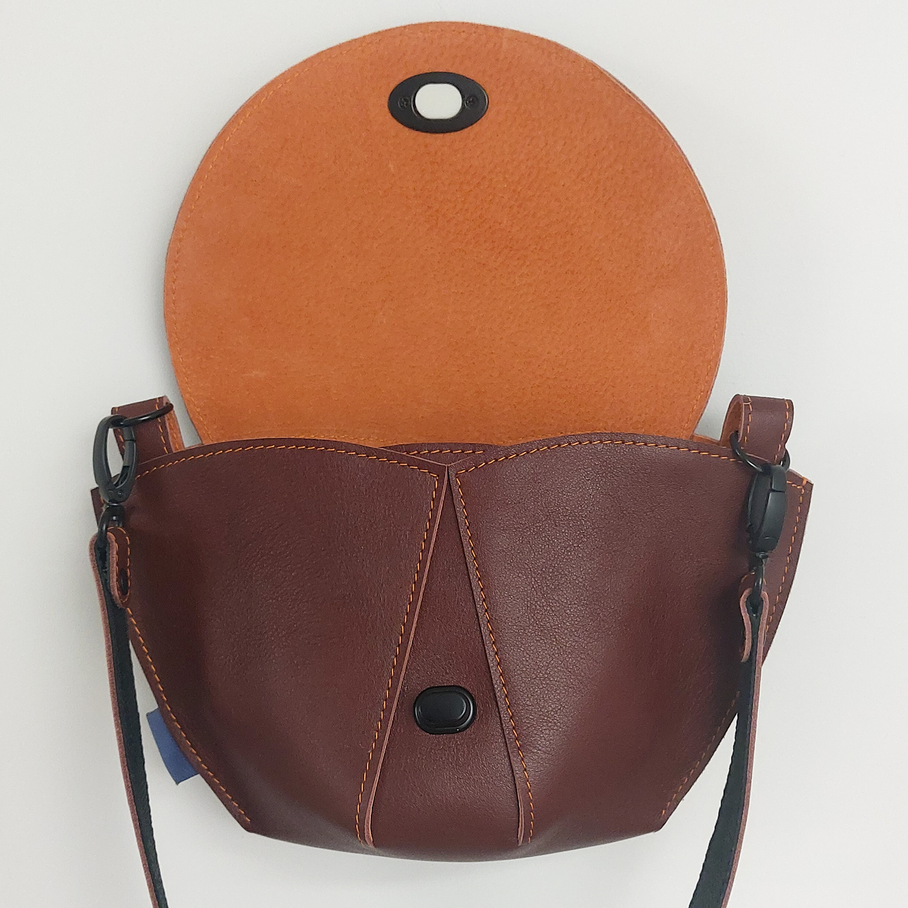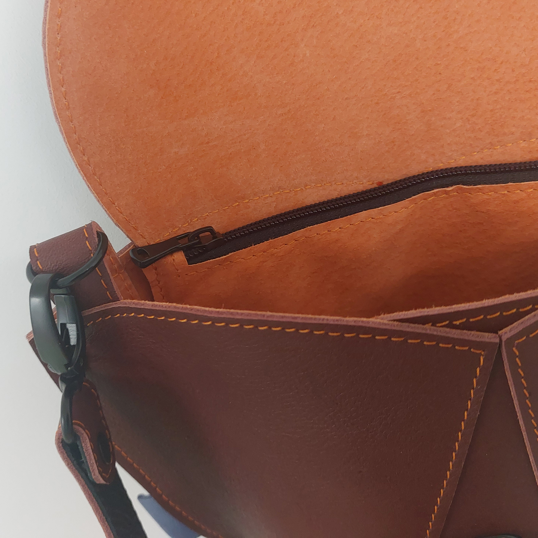 Een tas gemaakt van soepel Ecco leer, van het bekende schoenenmerk. Vanwege de beperkte verkrijgbaarheid van dit leer zijn er slechts enkele tassen van gemaakt.